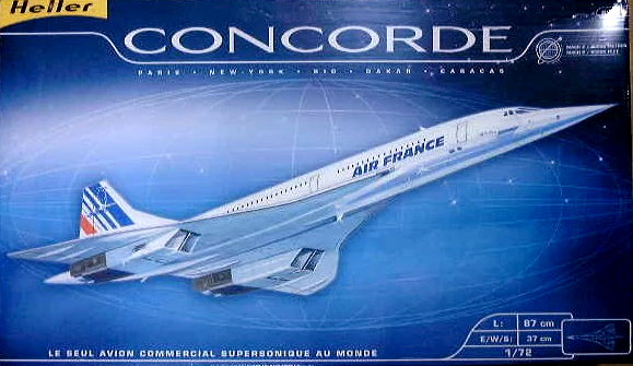 Vulcan. Mientras que los aviones comerciales subsonicos tardan alrededor de 8 horas en completar un viaje entre Paris y Nueva York, el Concorde solo necesitaba alrededor de 3 horas y 30 minutos. La altitud maxima que alcanzaba era de 18 300 metros y su velocidad de crucero era de Mach 2,02 (2410 km/h), mas del doble de la velocidad media de los aviones convencionales. Ningun otro aparato operaba a una altura tan elevada como lo hacia el Concorde. El diseño y presurizacion especial de la cabina del Concorde le permitia volar hasta una altura maxima de 60 000 pies. Todos estos adelantos tecnologicos, implicaban atencion en diversos detalles no necesarios en la aviacion convencional. En caso de que se produzca una violacion de la integridad estructural de la cabina, las mascaras de oxigeno y otros elementos de emergencia pierden su utilidad, sufriendo los pasajeros de hipoxia. Por lo que la aeronave estaba equipada con sistemas de reserva de aire para aumentar en casos de emergencia la presion en la cabina. Sus ventanas eran mas pequeñas de lo normal para ralentizar cambios bruscos en la presion atmosferica en relacion al exterior. El diseño de la entrada de aire a los motores fue una fase critica. Todos los motores convencionales pueden recibir el aire externo hasta la velocidad de Mach 0.5, pero en el Concord, el aire, a la entrada de los motores, se recibiria a Mach 2.0 (velocidad crucero del concorde) si entrara a esta velocidad, los motores vibrarian y se podrian fracturar. Se logro disminuir la velocidad del aire mediante la adicion de rampas a la entrada de los motores y una abertura de extraccion del flujo, las cuales se mueven de posicion durante el vuelo para desacelerar el aire , todo esto esta basado en la ley de conservacion de la masa y el estrangulamiento del flujo a la entrada. La estimacion original del desarrollo del Concorde, fue de £ 70 millones, pero encontro encontro enormes problemas y demoras, y el programa finalmente costo £ 1.3 mil millones. Fue este costo extremo el que se convirtio en el factor principal para que la produccion fuera mucho mas pequeña de lo previsto. Mas tarde, otro factor que afecto la viabilidad de todos los programas de transporte supersonico fue que el vuelo supersonico solo podia usarse en rutas de cruce oceanico, para evitar la perturbacion sonica del boom (Sonido emitido cuando se rompe la barrera del sonido) en areas pobladas. Con solo siete fuselajes operados por britanicos y franceses, el costo por unidad era imposible de recuperar, por lo que los gobiernos frances y britanico absorbieron los costos de desarrollo. British Airways y Air France pudieron operar el Concorde con ganancias, a pesar de los costos de mantenimiento muy altos, porque el avion pudo mantener un alto precio de boleto. Por ejemplo, en 1997, el precio del boleto de ida y vuelta desde Nueva York a Londres fue de $ 7,995 USD ($ 12,500 en dolares de 2018), mas de 30 veces el costo de la opcion mas barata para volar esta ruta. Durante el auge petrolero de Mexico, Air France establecio una ruta entre Washington (en ocasiones tambien desde Nueva York) y Ciudad de Mexico, con dos vuelos semanales. La ruta se mantuvo entre septiembre de 1978 y noviembre de 1982, momento en el que debido a una crisis economica y una gran falta de rentabilidad (en los ultimos vuelos el avion iba casi vacio) se cancelo. El 10 de abril de 2003, Air France y British Airways anunciaron al mismo tiempo que retirarian el Concorde a finales de año. Las razones dadas para retirarlo fueron el bajo numero de pasajeros tras el accidente del 25 de julio de 2000 (El vuelo 4590 de Air France, se estrello en Gonesse (Francia) y murieron los 100 pasajeros de la aeronave. Fue el primer y unico gran accidente del Concorde), el aumento de los costes de mantenimiento y la caida de los viajes en avion tras los atentados del 11 de septiembre de 2001. Air France realizo su ultimo vuelo comercial con un Concorde el 30 de mayo de 2003, con un ultimo vuelo entre Paris y Nueva York. Durante la semana siguiente, el Concorde F-DEAR hizo una serie de vuelos conmemorativos con viajes entre Paris y Nueva York, teniendo a bordo empleados de la compañia y otras personalidades. El ultimo vuelo de un Concorde de Air France tuvo lugar el 27 de junio de 2003, cuando el F-BVFC volo hasta Toulouse. El kit cuenta con interior de cabina cabina de mando y bahia de tren de aterrizajes muy bien detalladas. La nariz puede ser colocada abajo o arriba para posiciones de aterrizaje. Heller ha pensado en dar varias opciones de exhibicion y brinda al modelista tres posiciones posibles: Colocado en base (Incluida), el avion puede mostrarse en el despegue o aterrizaje e inclinarse mediante una rotula; otra opcion es con el tren abajo, los cuales tienen refuerzos que proporcionan estabilidad y la ultima, cuenta con puntos de anclaje en la parte superior (posiblemente con tren de aterrizaje retraido) para ser colgado. Calcas para la decoracion de una de cinco opciones, todas ellas de aeronaves de Airfrance. Mide ya ensamblado 865 mm por 355 mm y consta de 151 partes.